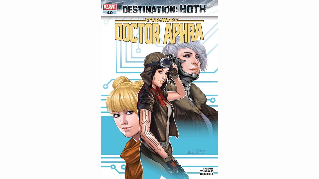 Star Wars: Doctor Aprha No. 40 by Simon Spurrier and artist Caspar Wijngaard finds Aphra once again in the service of Darth Vader as she leads him and his Imperial soldiers to the new Rebel base on Hoth. Her showdown with Darth Vader is punctuated by her contemplation of her own morality and the comparisons she draws between herself and the human side of Vader. Despite the comparison she makes, and her history with some of the worst folks the galaxy has had to offer, Aphra is different from other Star Wars villains, and in fact it’s questionable whether to even classify her as a villain, despite her employment by Darth Vader. Rather, Doctor Aphra walks in the moral gray area of the universe, driven largely by self-interest and her own fascination with the past, which she sees as a chance to find order in the universe. She’s a bit like Han Solo if he’d never joined the rebels, or perhaps more accurately, if we’re permitted to cross out Lucasfilm properties momentarily, Aprha is like Indiana Jones if he’d worked for Belloq before ultimately betraying him when things got too hot. “The gaps are where I’ve always lived. So forget the ideals. Forget the morals. Forget the forbidden blasted wisdom of ancient fanatics,” she opines in this issue as she contemplates her fate.