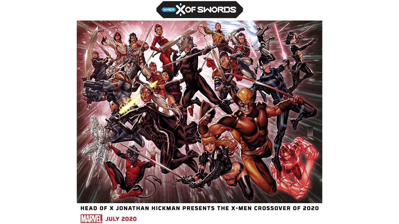 The crossover storyline was announced at Chicago’s C2E2 convention during the “Marvel Comics: X-Men” panel; although the length of X of Swords was revealed — 15 issues — no information about its launch was given beyond a July date, and no details of creators involved outside of Hickman. Mark Brooks illustrated the promotional image above, but even using that to try and find details might prove a fool’s errand; note that there are more than 10 characters to be found, each with their own swords.