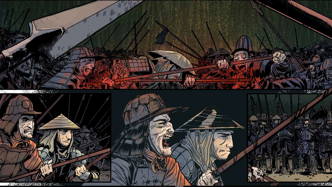 As might be expected, both are bringing a great deal of research to the project, set in the Sengoku Jidai era of Japanese history, but there’s more going into Red Bride than simply historical accuracy. “Thematically I owe a great debt to Japanese artist, comic, and filmmakers like Masaki Kobayashi [Samurai Rebellion], Kaneto Shindo [Onibaba] and especially the manga of Sanpei Shirato [The Legend of Kamui, Ninja Bugeicho, Sasuke, and countless others] who all created works of samurai fiction laying bare the brutality of these feudal systems, and with a sympathetic — if merciless — eye towards the people who would struggle to resist them, mostly in vain, while retaining their own humanity,” Girner said.