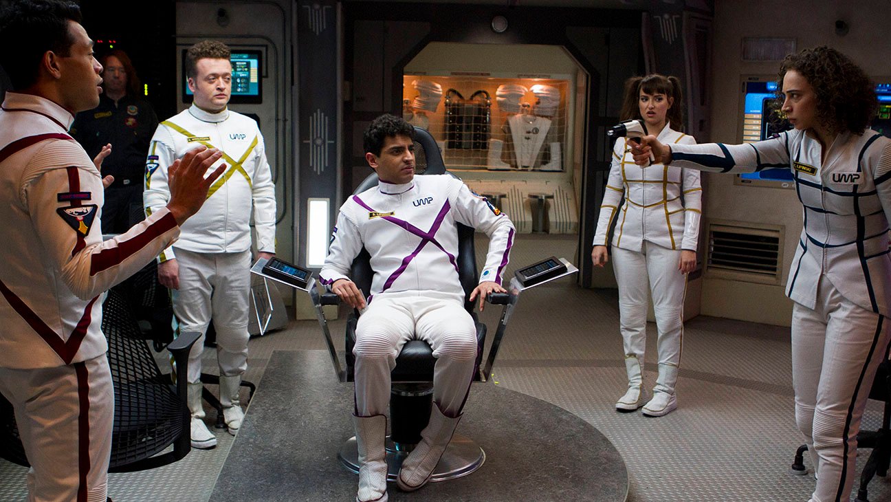 “We had like three days per episode,” Feig recalls of the whirlwind schedule that produced eight kinetic episodes in which it is eventually revealed the space ship has cameras set up to shoot a floating reality show. “Each take is a new take of a complete scene. You can play. Everyone I hired is good at improv. I was just so happy with it.”