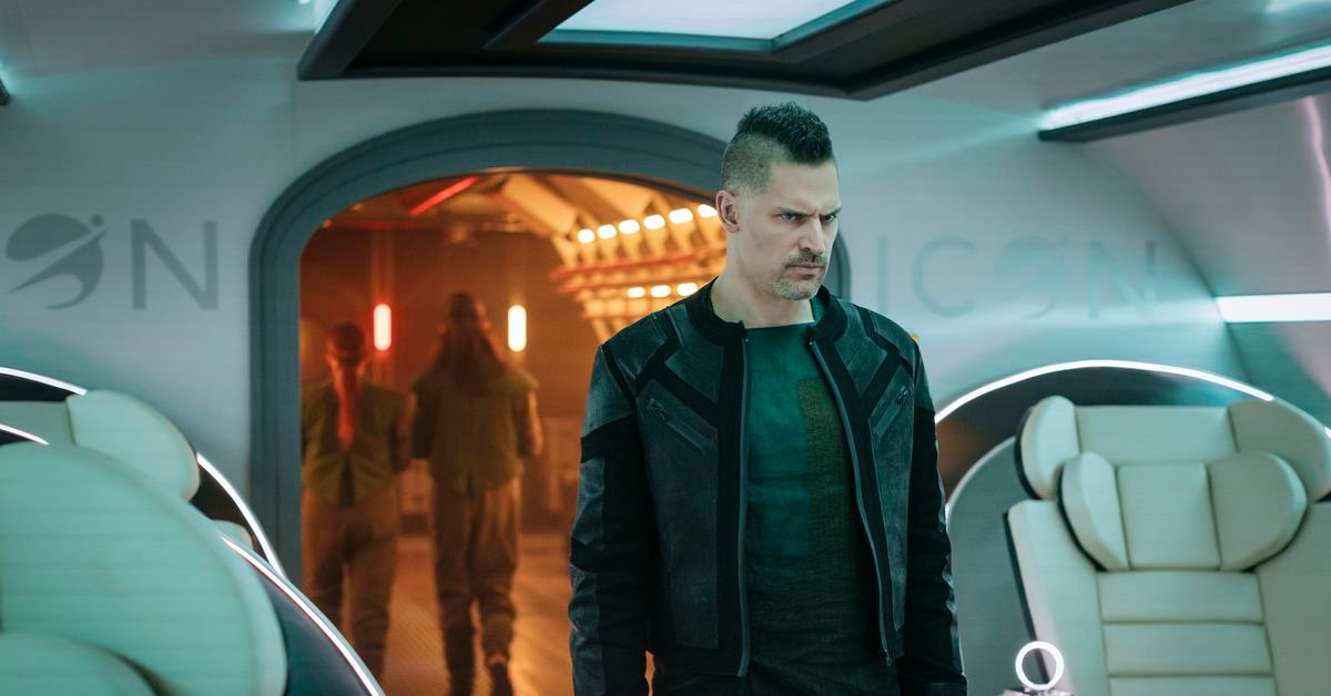 The story’s preamble alone could provide enough narrative grist for at least a feature film, but so far we’ve only covered that textual info-dump. The series’ main action picks up with the murder of a young “Mooner” (Nina Barker-Francis), a virtually unheard-of occurrence in the utopian colony — not only is this a place of peace, but technology has advanced sufficiently that the killer can be identified by waving a futuristic scanner at the victim’s body. So far, so tech noir, but there won’t be much time for pondering the case, as moments later we meet the series’ protagonist, Earthling pilot Bella Sway (Emma McDonald). Bella makes frequent cargo runs to the moon, but as we meet her, she has been tasked with transporting the colony’s envoy (Amara Karan) and her bodyguard (Joe Manganiello). On arrival, though, Bella’s true mission is revealed: She’s been hired to smuggle a powerful moon drug back to Earth. To make matters more complex (for both Bella and the viewer), a key revelation connecting her to the moon will compel her to stay, folding the drug smuggling plot into the crazy quilt that is this story. What are the effects of this apparently desirable moon drug? The Moonhaven viewer will quickly learn not to ask questions, as any potential lore rabbit hole is only gestured at before the story power-walks on to the next.