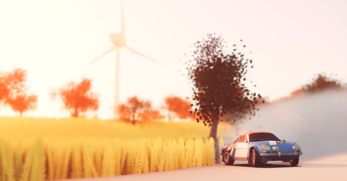 I wasn’t expecting this, given what I enjoy most about rally titles, like the just-released WRC 9 and Codemasters’ outstanding Dirt series. The overhead, pulled-back view of the course and the primary-color environment I saw in screenshots gave me a trepid Smashy Road feeling. But that was quickly disabused, just by fiddling with some settings and changing the camera perspective.