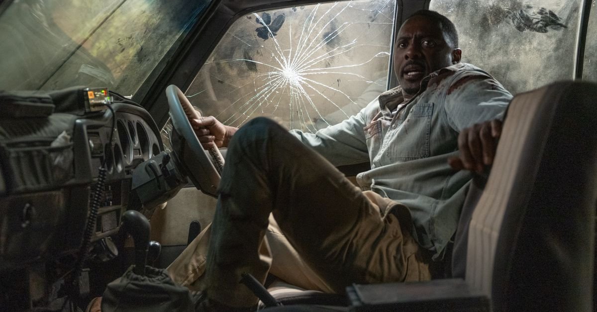 Beast’s most noticeable departure from the Jurassic series is its intimacy; only four members of the human cast really register as significant. Nate Samuels (Idris Elba) is a doctor returning to South Africa for a vacation with his daughters Meredith (Iyana Halley) and Norah (Leah Jeffries) following the death of the girls’ mother, who was separating from Nate when she got sick. They meet up with Uncle Martin (Sharlto Copley), though his title is an honorific; he’s a friend of the family who now works as an “anti-poacher” on an African preserve, protecting lions and other animals. Martin takes them out to see some lions and visit a local village. They find the village has been torn apart, and soon enough, a single vengeful lion is stalking all of them.