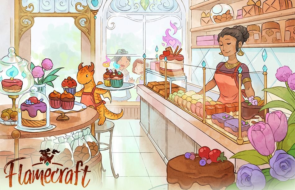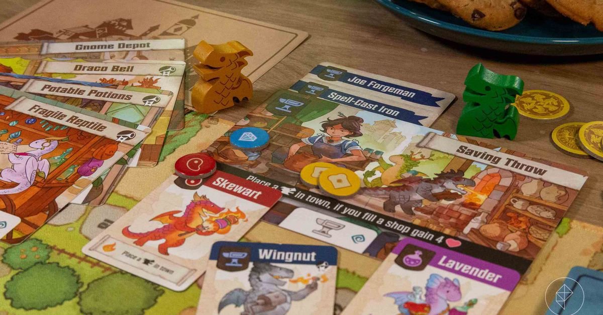 Flamecraft is a collaborative engine-building game where players work together to populate a Ghibli-esque town with artisan dragons. Together, these highly skilled little critters and their human companions churn out goods like metalwork, meat dishes, and fresh-baked bread. The puns are off the charts, with storefronts featuring names like Fogo de Char (a butcher), Gnome Depot (which sells cauldrons), and Saving Throw (for all your pottery needs). That same sort of playfulness extends to and through every element of the game — even the dragons themselves, with monikers like Cutlet, Dandelion, and Flint.