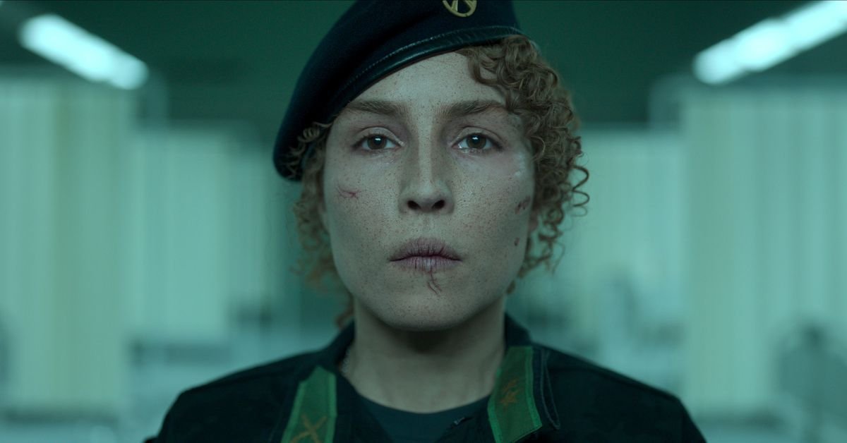 Rapace is convincing, but can’t do much with the thin material. Caroline, insubordinate and volatile, is seen in flashback scenes trying to survive the early days of the war with her daughter Vanja, who is ripped away from her. Her superiors exploit this pain as motivation, and their promise of an easy end to the war should her mission succeed is suspicious, to say the least. But she charges on regardless. Her nihilistic drive makes sense, but her blinkered obliviousness doesn’t, and when the scales fall from her eyes, viewers are likely to roll theirs. The antagonism between her and another of the soldiers, Nylund (Jakob Oftebro), fizzles and flares and fizzles, however the plot demands it. Lunges for pathos with the other soldiers are undermined by how basically they’re drawn and realized.