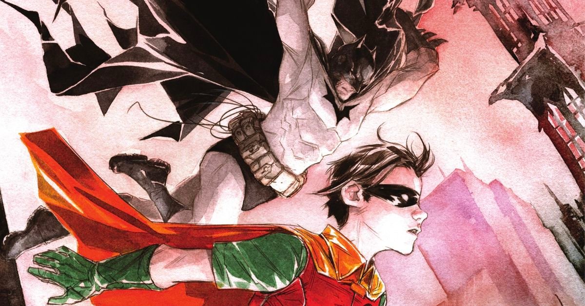 Robin & Batman is helmed by Eisner-award winners Jeff Lemire and Dustin Nguyen, with letter work by Steve Wands. As writer and artist respectively, Lemire & Nguyen are also the creative team behind Image Comics’ Descender, which just wrapped up its 5-year run earlier this year with the eighteenth issue of its sequel series, Ascender. Nguyen is certainly no stranger to Gotham City; on top of drawing and painting a sterling 20-issue run on Batman: Streets Of Gotham (written by Paul Dini), Nguyen also saw a stretch on the weekly Bat-Family event series Batman Eternal, the DCU future shock series, Batman Beyond Unlimited, and co-wrote Batman: Li’l Gotham with frequent collaborator, Derek Fridolfs. Lemire’s time in Gotham is more limited, but DC recently published Joker: Killer Smile which paired Lemire with his Gideon Falls co-creator Andrea Sorrentino, and they capped off the DC Black Label miniseries with the epilogue one-shot, Batman: Smile Killer.