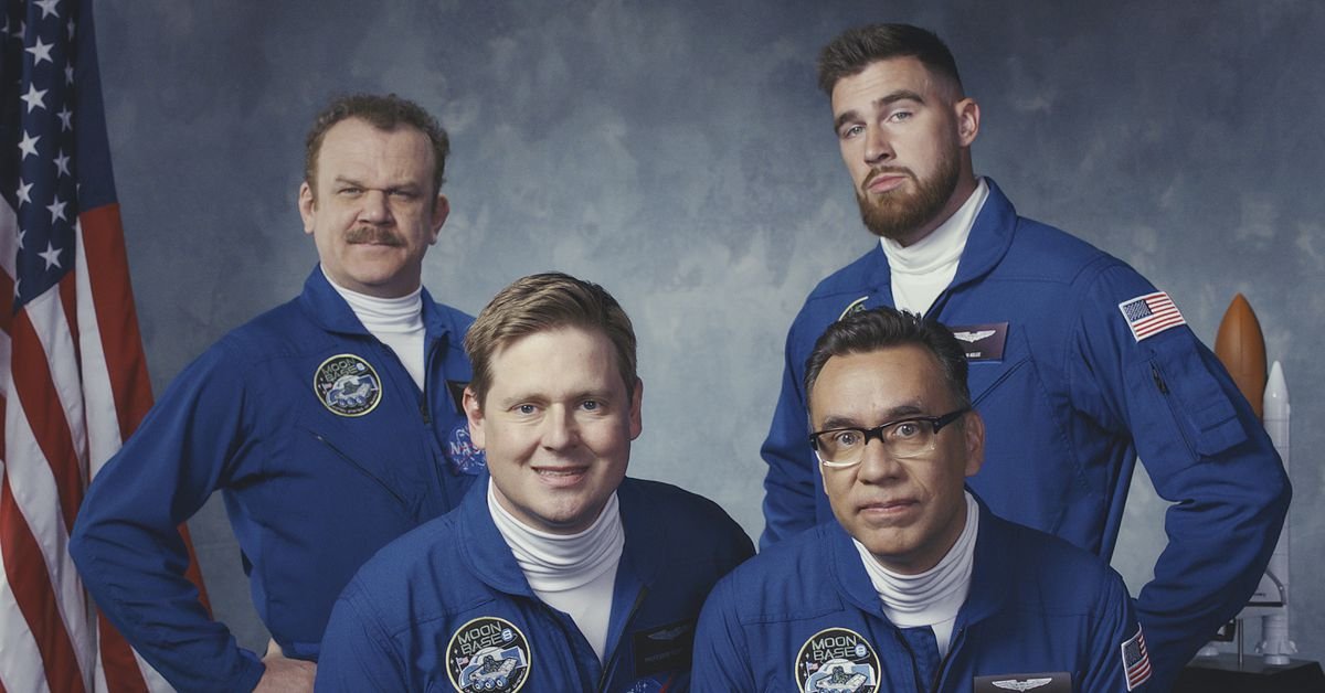 Unlike Portlandia, which lampooned the city of Portland and the most ridiculous aspects of progressive politics, Moonbase 8 is a show about nothing. Its success rests on finding the laughs in bonkers scenarios that would easily find a home on Saturday Night Live. For instance, the show’s premiere guest stars Kansas City Chiefs tight end Travis Kelce — who’s assigned to the base as a cross-promotion between NASA and the NFL. While the episode sees the trio’s water tank, which is meant to last them a month, run dry within a week, it’s ostensibly about Kelce treating Cap as his personal lapdog.