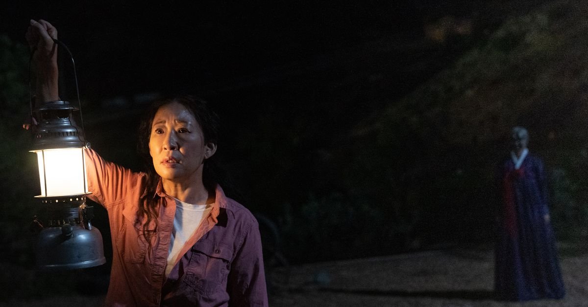 Instead, Amanda (Killing Eve co-star Sandra Oh) spends a lot of time moping. Amanda has escaped her domineering mother in Korea (the movie’s title comes from “mother” in Korean) and relocated to America, where she and her teenage daughter Chris (Fivel Stewart) make honey at a remote little bee farm. Their only regular point of contact is a friendly local (Dermot Mulroney) who helps sell their honey online in exchange for bookkeeping work from Amanda. Why do they need to barter with someone to maintain a modest e-commerce business? Because they live without the use of electricity: no lights, no cell phones, no internal combustion engines. (Visitors must shut off their car motors as soon as they reach the property.) Amanda claims that electricity makes her physically ill, a clear obfuscation of her troubled past.