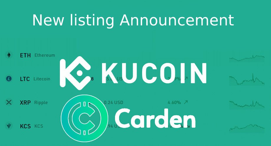 Kucoin will list CARDEN (CDN) in beginning of January 2022. As stated from their announcement and decision date email. Kucoin is extremely proud to announce yet another great project coming to our trading platform. Carden Token (CDN) will be available on Kucoin platform. Supported trading pair will be CDN/USDT.