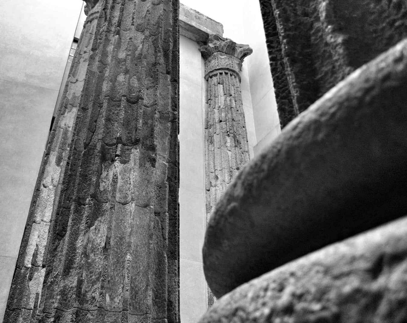 In Plaça Nova features two sections of Roman wall and two square towers from the second city wall, built in the fourth century AD. It was here that carriages and pedestrians once entered the city from the north through the main gate called Porta Praetoria.